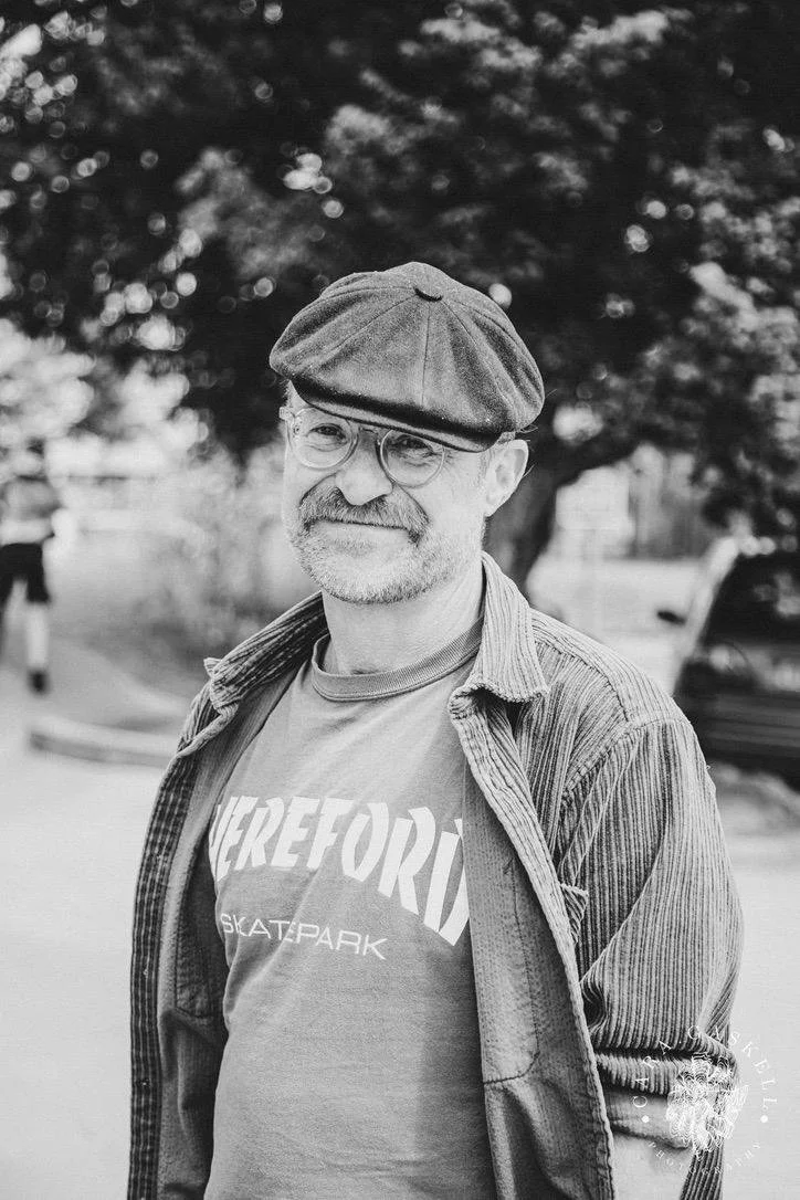 Col became really interested in the amazing and inspiring resource that is Hereford Skatepark while trying to learn to skate in COVID-19 lockdown with his 6 and 8 year old boys, Fin and Kit. He is excited about watching them develop as exciting young skaters and has ambitions himself to become a mediocre old skater one day.